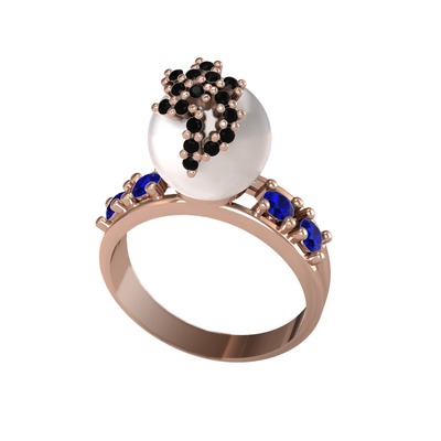 Inci, siyah zirkon ve lab safir 18 ayar rose altın yüzük