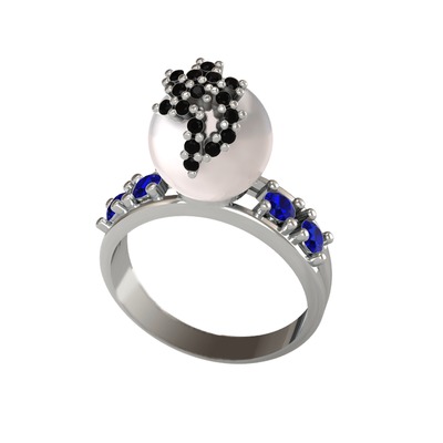 Inci, siyah zirkon ve lab safir 925 ayar gümüş yüzük