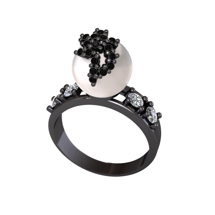 Inci, siyah zirkon ve swarovski 925 ayar siyah rodyum kaplama gümüş yüzük