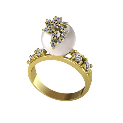 Inci, swarovski ve pırlanta 14 ayar altın yüzük (0.044 karat)
