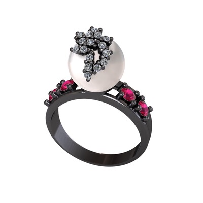 Inci, swarovski ve rodolit garnet 925 ayar siyah rodyum kaplama gümüş yüzük