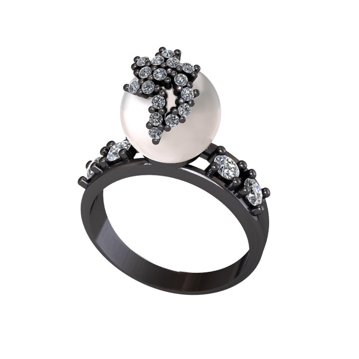Inci ve swarovski 925 ayar siyah rodyum kaplama gümüş yüzük