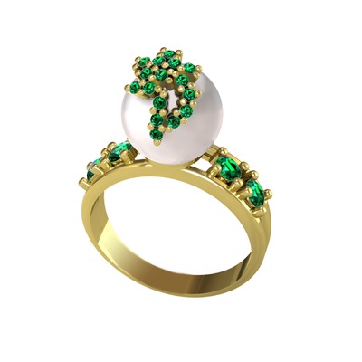 Inci ve yeşil kuvars 14 ayar altın yüzük