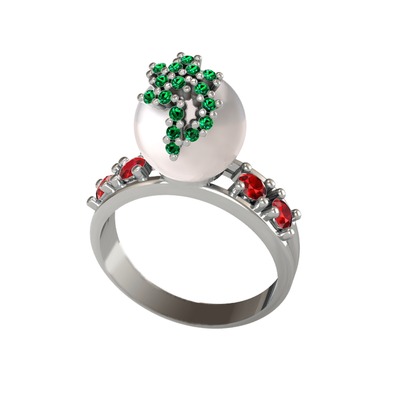 Inci, yeşil kuvars ve garnet 18 ayar beyaz altın yüzük
