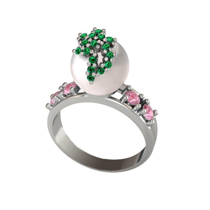Inci, yeşil kuvars ve pembe kuvars 8 ayar beyaz altın yüzük