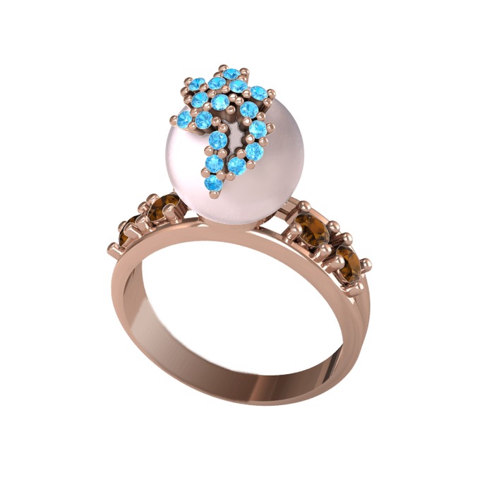 Pembe inci, akuamarin ve dumanlı kuvars 8 ayar rose altın yüzük
