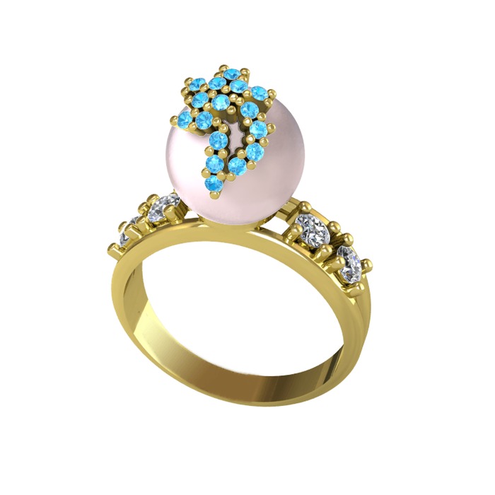 Pembe inci, akuamarin ve pırlanta 925 ayar altın kaplama gümüş yüzük (0.044 karat)