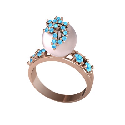 Pembe inci ve akuamarin 925 ayar rose altın kaplama gümüş yüzük