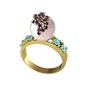Pembe inci, ametist ve akuamarin 14 ayar altın yüzük