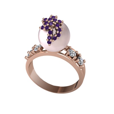 Pembe inci, ametist ve pırlanta 14 ayar rose altın yüzük (0.044 karat)