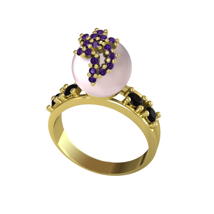 Pembe inci, ametist ve siyah zirkon 925 ayar altın kaplama gümüş yüzük