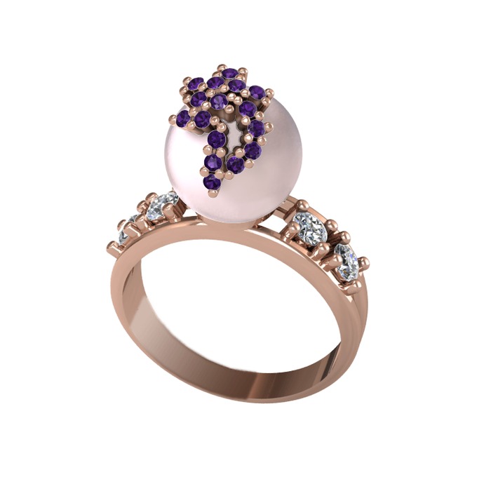 Pembe inci, ametist ve swarovski 925 ayar rose altın kaplama gümüş yüzük