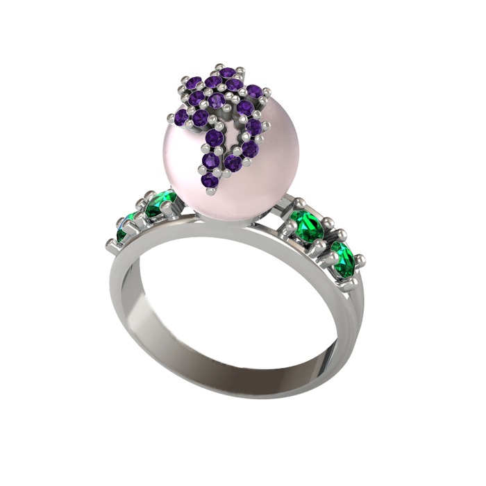Pembe inci, ametist ve yeşil kuvars 8 ayar beyaz altın yüzük