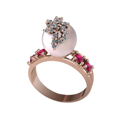 Pembe inci, beyaz zirkon ve rodolit garnet 925 ayar rose altın kaplama gümüş yüzük