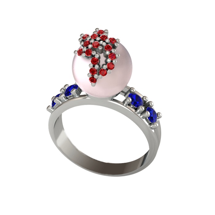 Pembe inci, garnet ve lab safir 14 ayar beyaz altın yüzük