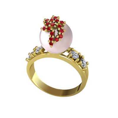 Pembe inci, garnet ve pırlanta 18 ayar altın yüzük (0.044 karat)