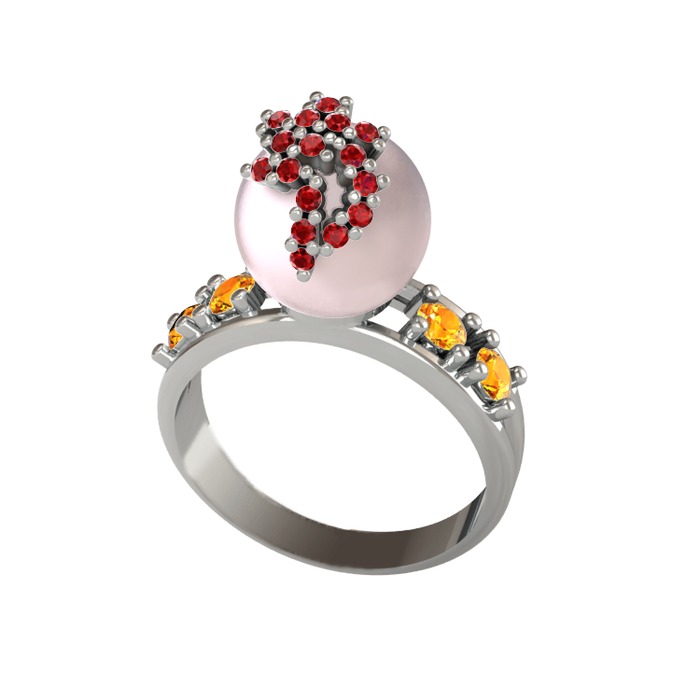 Pembe inci, garnet ve sitrin 925 ayar gümüş yüzük