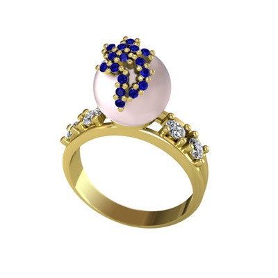Pembe inci, lab safir ve beyaz zirkon 14 ayar altın yüzük