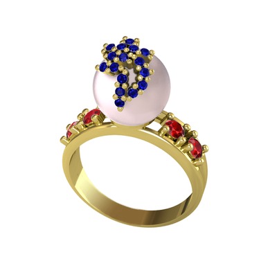 Pembe inci, lab safir ve garnet 925 ayar altın kaplama gümüş yüzük