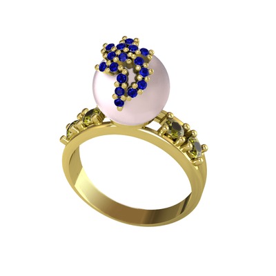 Pembe inci, lab safir ve peridot 8 ayar altın yüzük