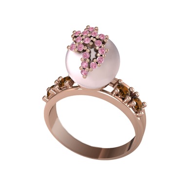 Pembe inci, pembe kuvars ve dumanlı kuvars 8 ayar rose altın yüzük