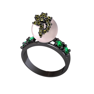 Pembe inci, peridot ve yeşil kuvars 925 ayar siyah rodyum kaplama gümüş yüzük