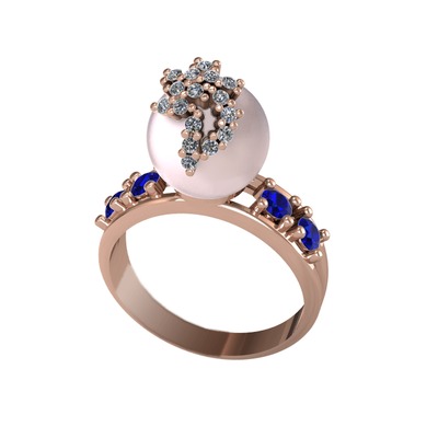 Pembe inci, pırlanta ve lab safir 925 ayar rose altın kaplama gümüş yüzük (0.176 karat)