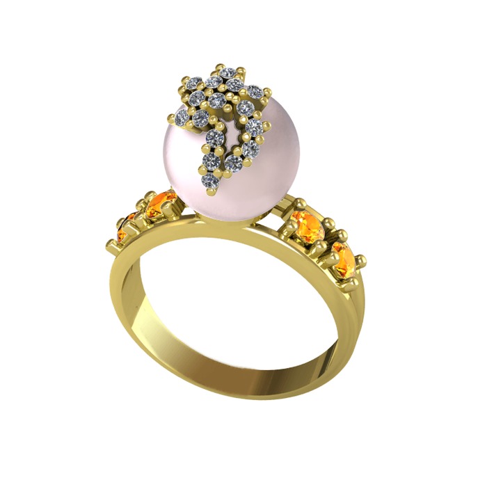 Pembe inci, pırlanta ve sitrin 18 ayar altın yüzük (0.176 karat)