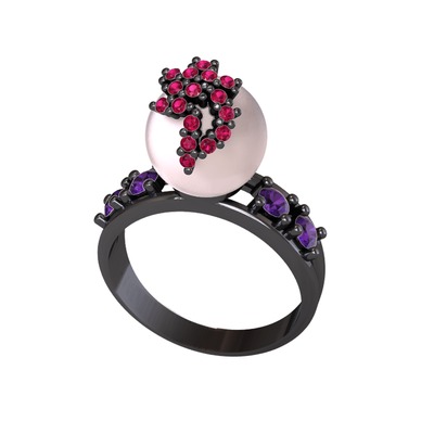 Pembe inci, rodolit garnet ve ametist 925 ayar siyah rodyum kaplama gümüş yüzük