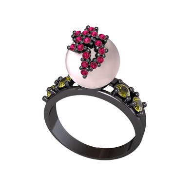 Pembe inci, rodolit garnet ve peridot 925 ayar siyah rodyum kaplama gümüş yüzük