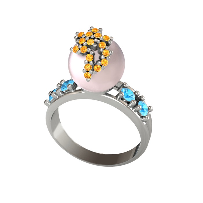 Pembe inci, sitrin ve akuamarin 14 ayar beyaz altın yüzük