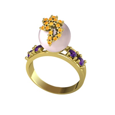 Pembe inci, sitrin ve ametist 14 ayar altın yüzük