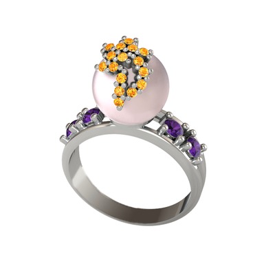 Pembe inci, sitrin ve ametist 925 ayar gümüş yüzük