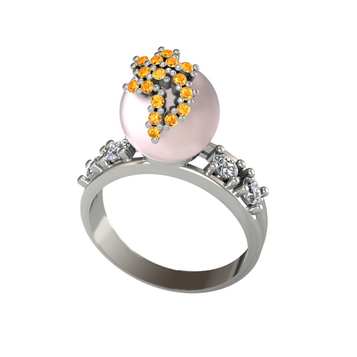 Pembe inci, sitrin ve beyaz zirkon 14 ayar beyaz altın yüzük