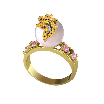 Pembe inci, sitrin ve pembe kuvars 14 ayar altın yüzük