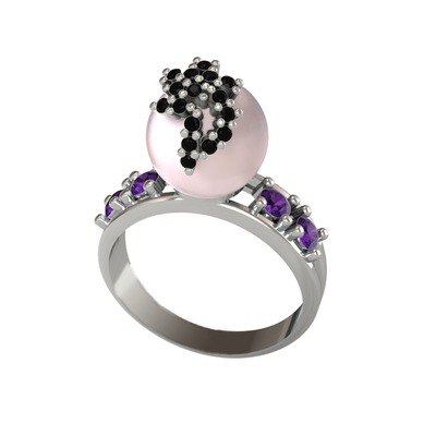 Pembe inci, siyah zirkon ve ametist 925 ayar gümüş yüzük