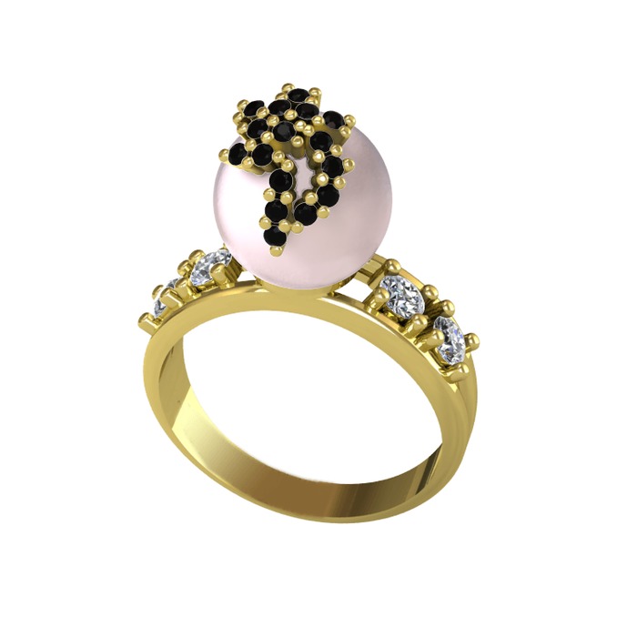 Pembe inci, siyah zirkon ve pırlanta 8 ayar altın yüzük (0.044 karat)