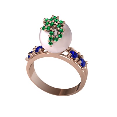 Pembe inci, yeşil kuvars ve lab safir 8 ayar rose altın yüzük