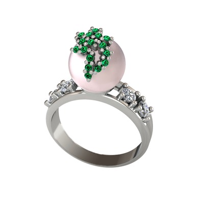 Pembe inci, yeşil kuvars ve swarovski 14 ayar beyaz altın yüzük