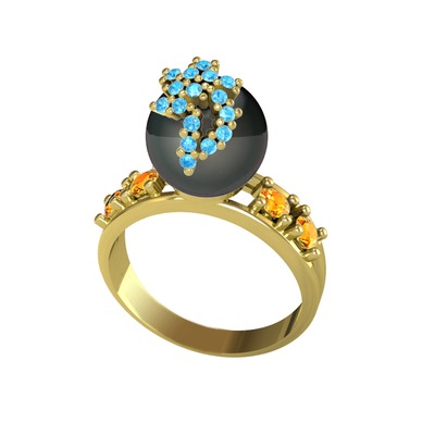 Siyah inci, akuamarin ve sitrin 8 ayar altın yüzük