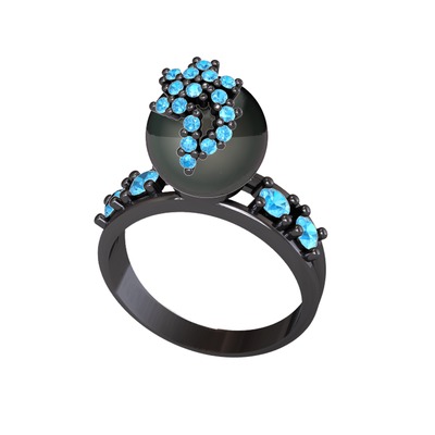 Siyah inci ve akuamarin 925 ayar siyah rodyum kaplama gümüş yüzük