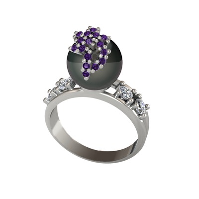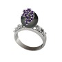 Siyah inci, ametist ve beyaz zirkon 18 ayar beyaz altın yüzük