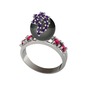 Siyah inci, ametist ve rodolit garnet 14 ayar beyaz altın yüzük