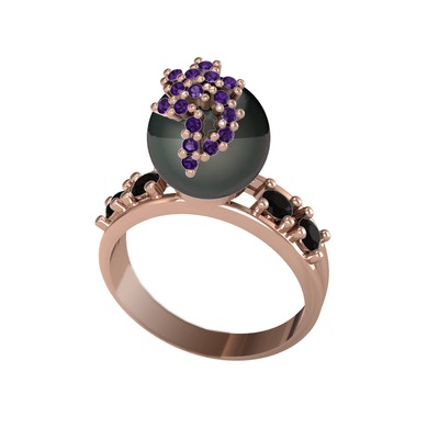 Siyah inci, ametist ve siyah zirkon 8 ayar rose altın yüzük