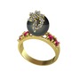 Siyah inci, beyaz zirkon ve rodolit garnet 8 ayar altın yüzük