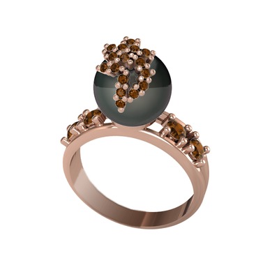 Siyah inci ve dumanlı kuvars 8 ayar rose altın yüzük