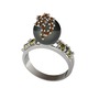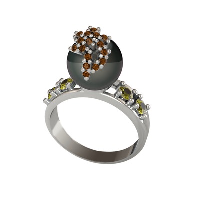 Siyah inci, dumanlı kuvars ve peridot 925 ayar gümüş yüzük