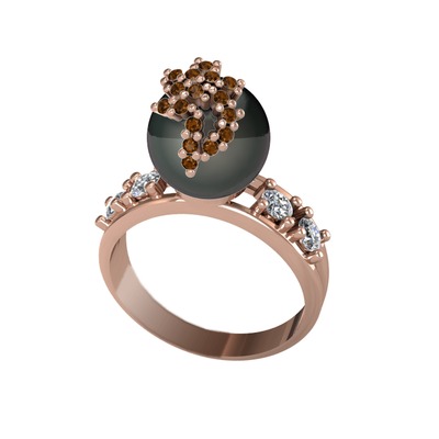 Siyah inci, dumanlı kuvars ve pırlanta 8 ayar rose altın yüzük (0.044 karat)