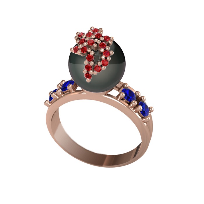 Siyah inci, garnet ve lab safir 8 ayar rose altın yüzük