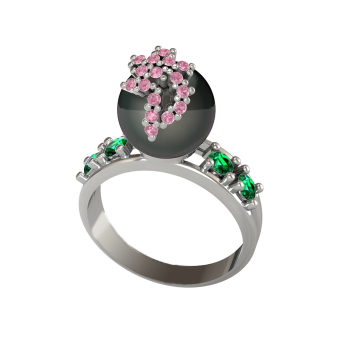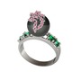 Siyah inci, pembe kuvars ve yeşil kuvars 8 ayar beyaz altın yüzük